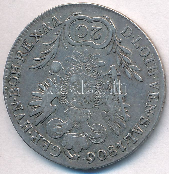 https://www.darabanth.com/en/287-Online-auction/287.0/Numismatics/Worldwide-silver-and-metal-coins~300014/Ausztria-1806A-20kr-Ag-I-Ferenc-6-52g-T2-3--Austria-1806A-20-Kreuzer-Ag-Franz-I-6-52g-CV~II1502447