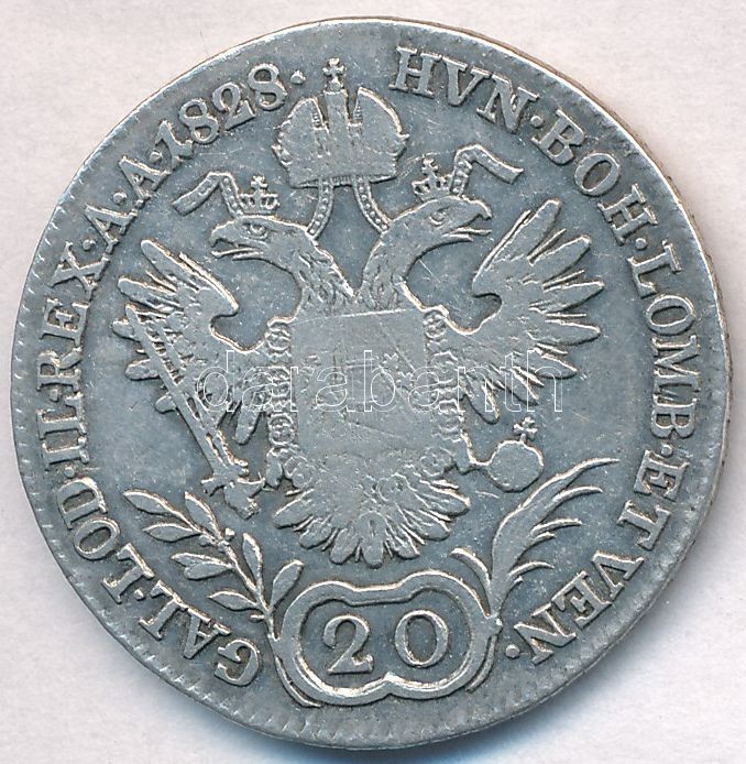 https://www.darabanth.com/en/287-Online-auction/287.0/Numismatics/Worldwide-silver-and-metal-coins~300014/Ausztria-1828A-20kr-Ag-I-Ferenc-6-48g-T2-3--Austria-1828A-20-Kreuzer-Ag-Franz-I-6-48g-CV~II1502498