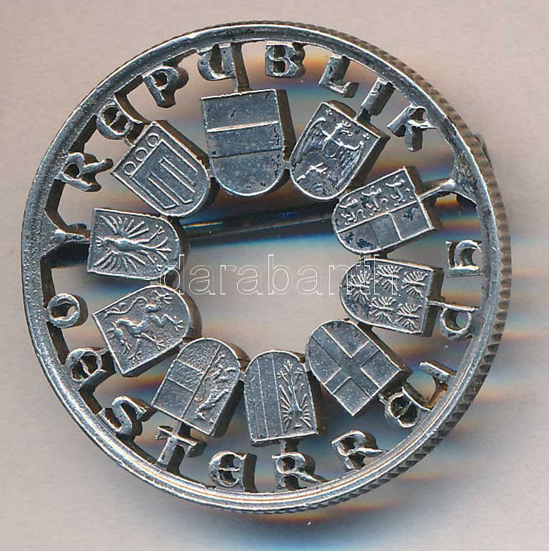Ausztria 1932. 2Sch Ag "Haydn" címerek kivágva és jelvénnyé alakítva