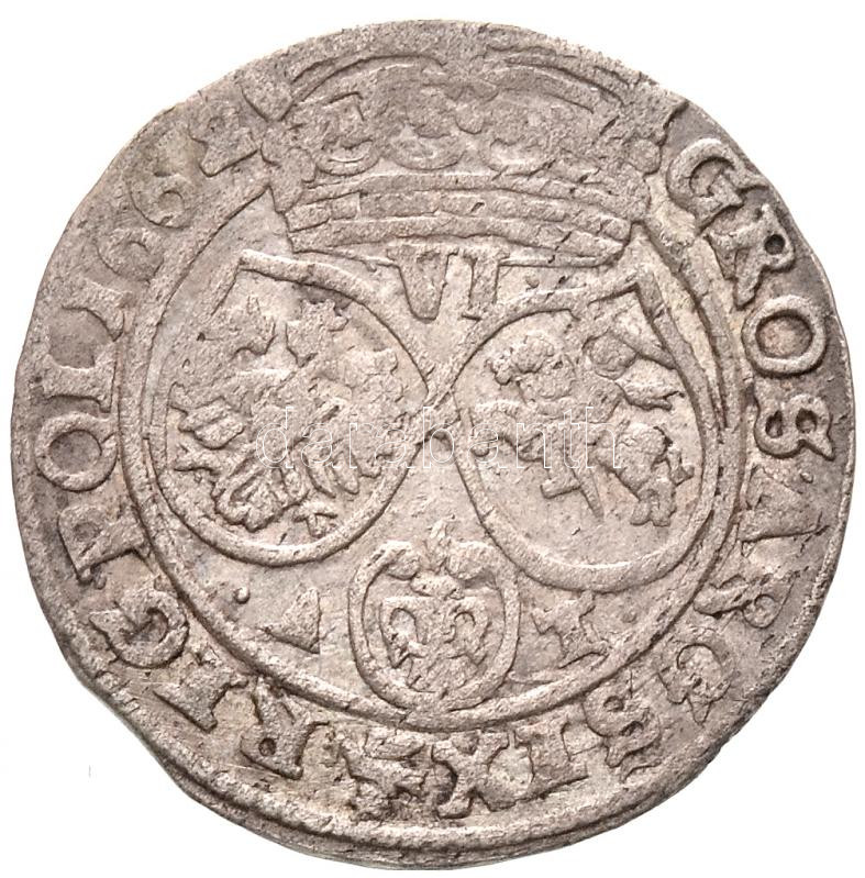 https://www.darabanth.com/en/287-Online-auction/287.0/Numismatics/Worldwide-silver-and-metal-coins~300014/Lengyel-Kiralysag-1662A-T-6Gr-Ag-II-Janos-Kazmer-3-21g-T2-2---Poland-1662A-T-6-Grossi-Ag-~II1503536