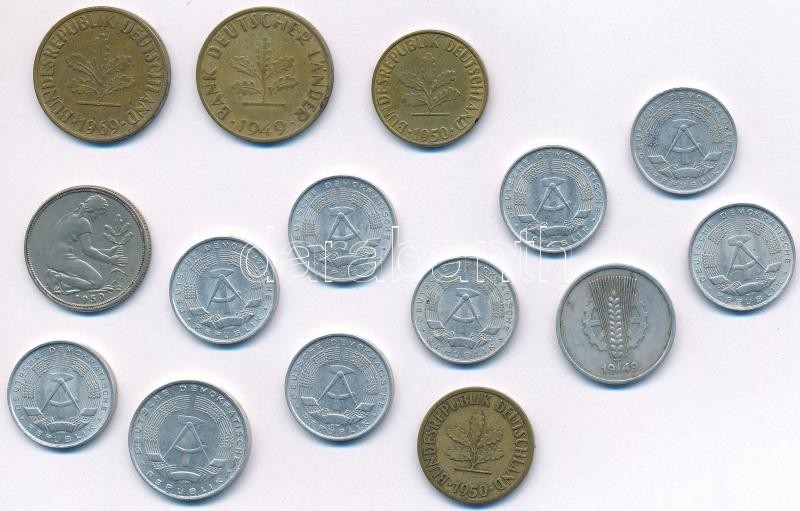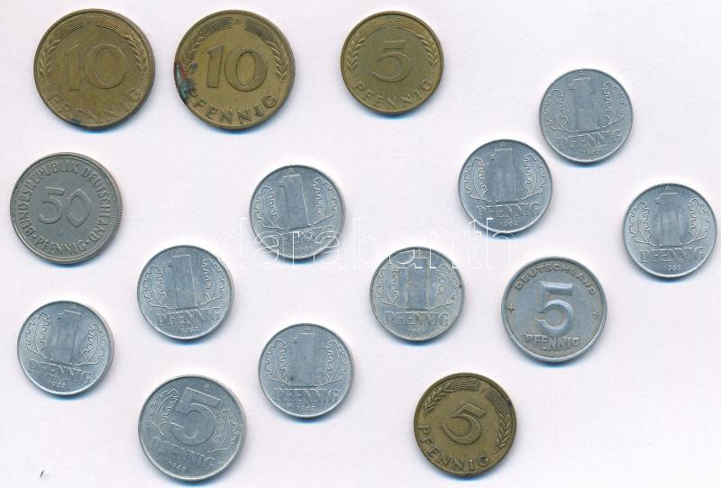 FRG 1949-1969. 5 Pfennig - 50 Pfennig (5x) + GDR 1949-1968. 1 Pfennig - 5 Pfennig (10x) C:XF