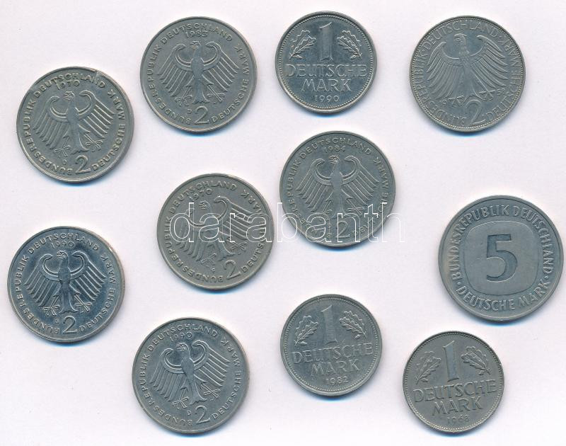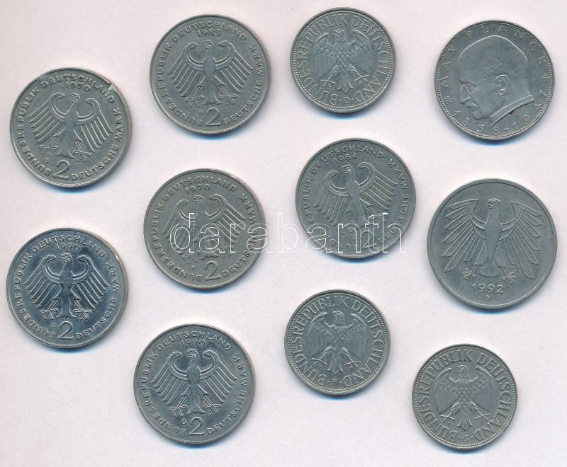 NSZK 1968-1990. 1M Cu-Ni (3xklf) + 1958F 2M Cu-Ni "Max Planck" + 1970-1984. 2M Cu-Ni "Konrad Adenauer" (2xklf) + 1970-1983. 2M Cu-Ni "Theodor Heuss" (2xklf) + 1990G 2M Cu-Ni "Dr. Kurt Schumacher" + 1990D 2M Cu-Ni "Franz Joseph Strauss" + 1992D 5M Cu-Ni T:2 ph., ü. FRG 1968-1990. 1 Mark Cu-Ni (3xdiff) + 1958F 2 Mark Cu-Ni "Max Planck" + 1970-1984. 2 Mark Cu-Ni "Konrad Adenauer" (2xdiff) + 1970-1983. 2 Mark Cu-Ni "Theodor Heuss" (2xdiff) + 1990G 2 Mark Cu-Ni "Dr. Kurt Schumacher" + 1990D 2 Mark Cu-Ni "Franz Joseph Strauss" + 1992D 5 Mark Cu-Ni C:XF edge error, ding Krause KM#110, KM#116, KM#124, KM#A127, KM#149, KM#175, KM#140.1