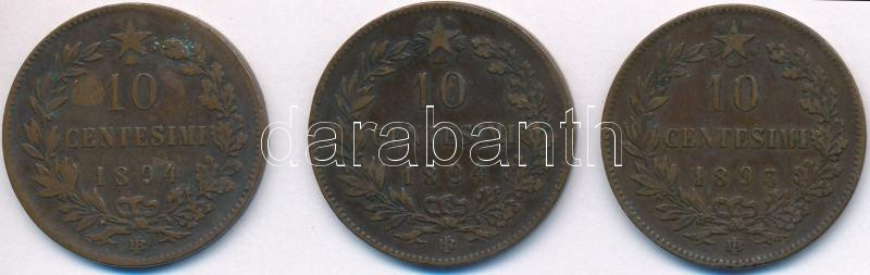 Olaszország 1893R-1894R 10c Cu "I. Umberto" (3x) T:2,2- ph.