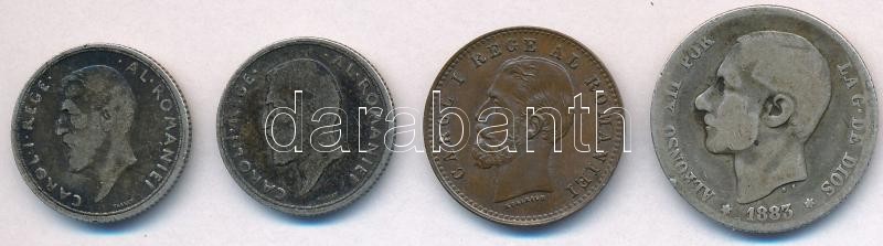 Vegyes: Románia 1900B 2b Cu + 1912-1914. 50b Ag "I. Károly" (2x) + Spanyolország 1883. 1P Ag "XII. Alfonz" T:2-3
