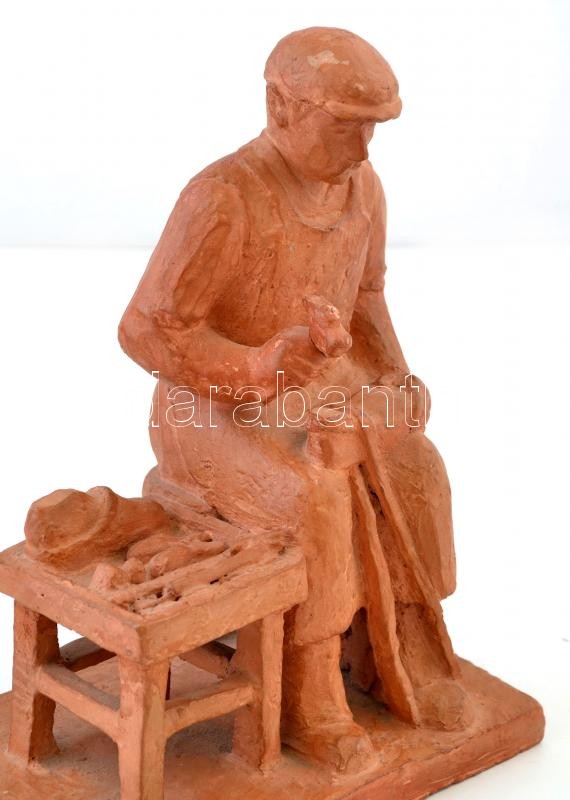 Péter József (?-?): Cipész, terrakotta, jelzett, kis lepattanásokkal, ...