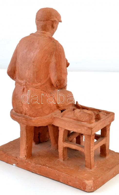 Péter József (?-?): Cipész, terrakotta, jelzett, kis lepattanásokkal, m: 26,5 cm