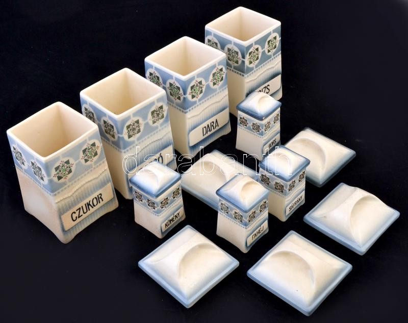 Susi fűszertartó kicsi és nagy dobozok tetővel, néhányon lepattanásokkal, matricás, jelzett, összesen:8 db, m:10 cm és 19 cm