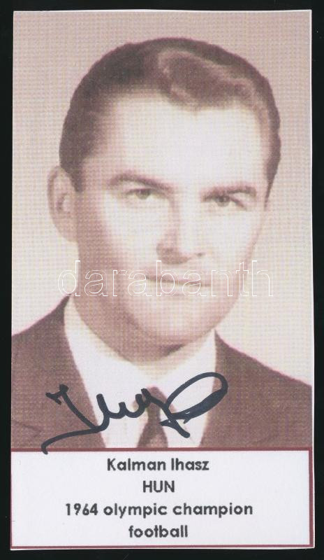 Ihász Kálmán (1941) olimpiai bajnok labdarúgó aláírása egy őt ábrázoló...