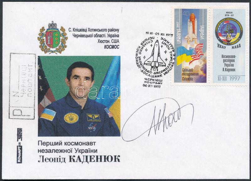 Leonyid Kadenyuk (1951- ) ukrán űrhajós aláírása emlékborítékon /