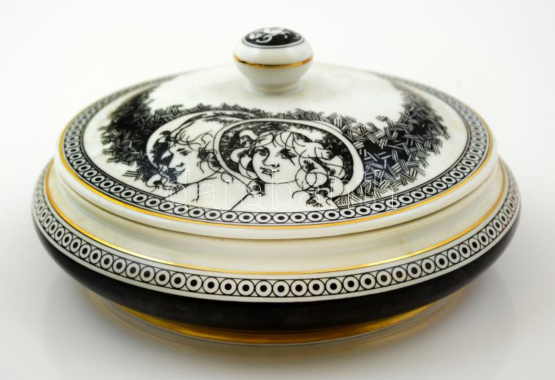 Hollóházi Jurcsák László által tervezett porcelán bonbonier, matricás,...