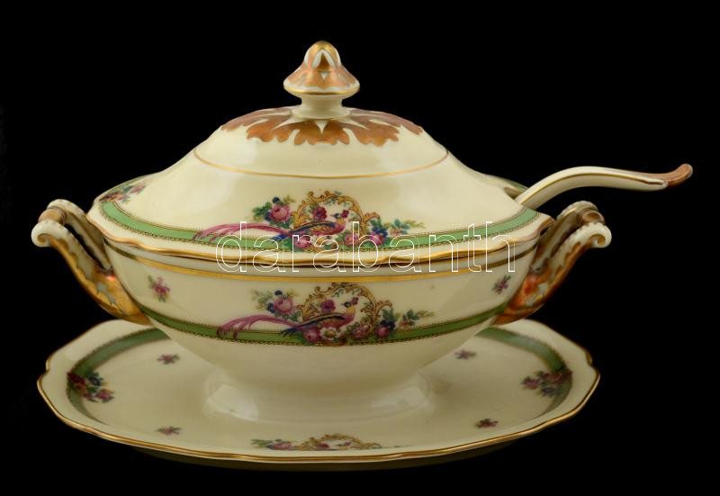Hutschenreuther szószos kínáló, kanállal, matricás, jelzett, hibátlan, 22×15 cm, h:19 cm