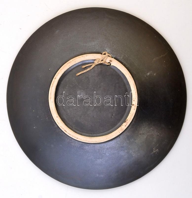 Retro fali tányér, mázas kerámia, jelzés nélkül, hibátlan, d:27 cm