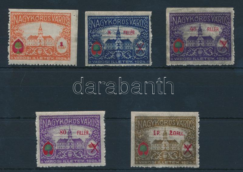 1928-1933 5 klf Nagykőrösi városi illetékbélyeg, 4 db 2 oldalon vágott (21.750)