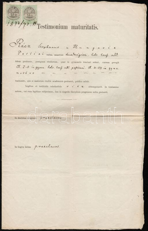 https://www.darabanth.com/en/287-Online-auction/287.0/Other-collectibles/Documents~100016/1873-Pesti-evangelikus-gimnazium-altal-kiallitott-bizonyitvany-pecsettel-alairasokkal-~II1503717