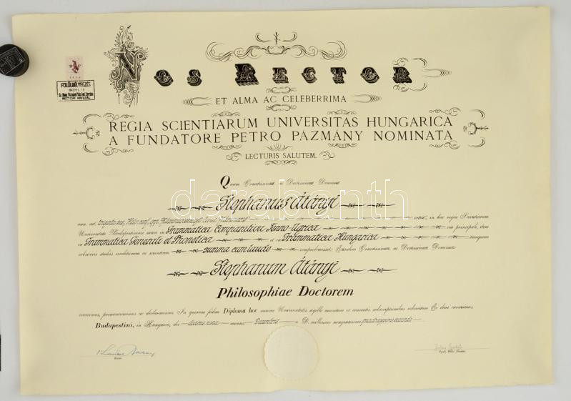 https://www.darabanth.com/en/287-Online-auction/287.0/Other-collectibles/Documents~100016/1942-Filozofiai-doktori-diploma-Szekfu-Gyula-alairasaval~II1478816