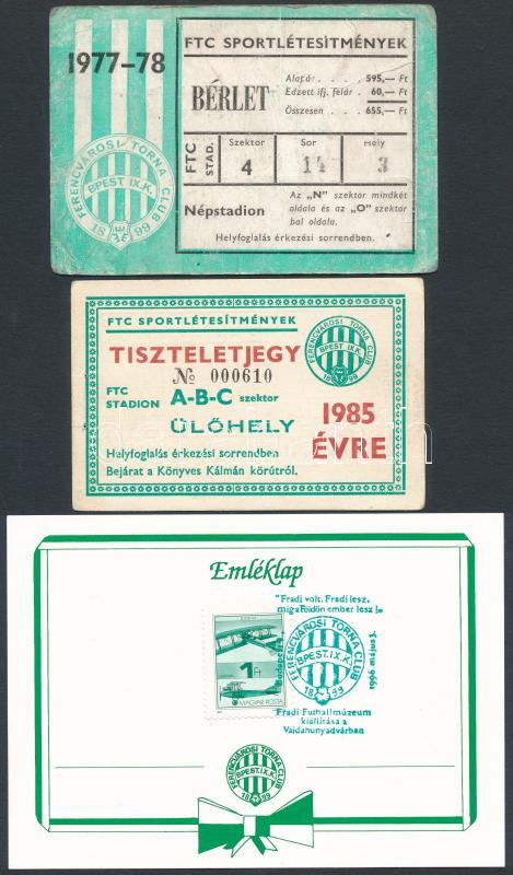 1977-1988 Bérlet és tiszteletjegy az FTC sportlétesítményekbe + emléklap, 3 db