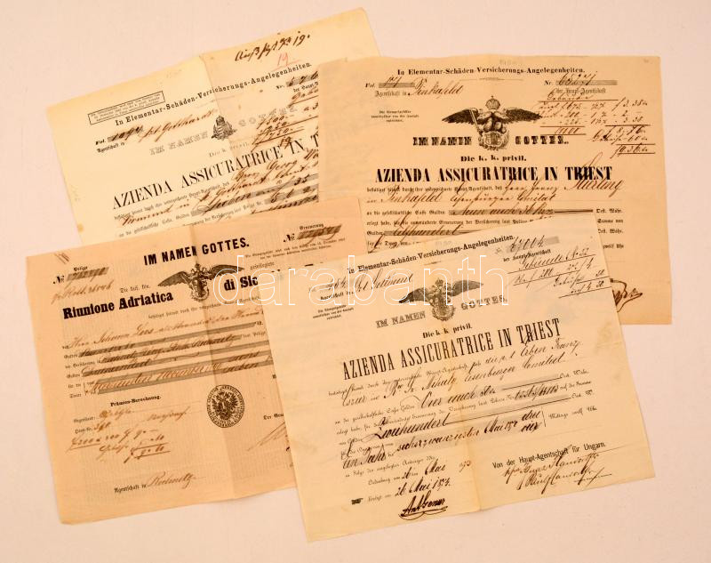 cca 1860 Az Adria Biztosító társaság 4 db biztosítási kötvénye jó áll... https://www.darabanth.com/en/287-Online-auction/287.0/Other-collectibles/Documents~100016/cca-1860-Az-Adria-Biztosito-tarsasag-4-db-biztositasi-kotvenye-jo-allapotban-pinkafoi-e~II1452601