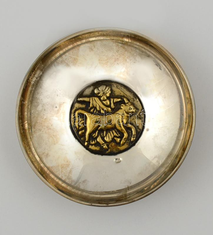 Postes helleniques emlék tálka, ezüst (Ag.) és réz közép résszel, jelzett, ereded:7,5 cm bruttó: 44 g