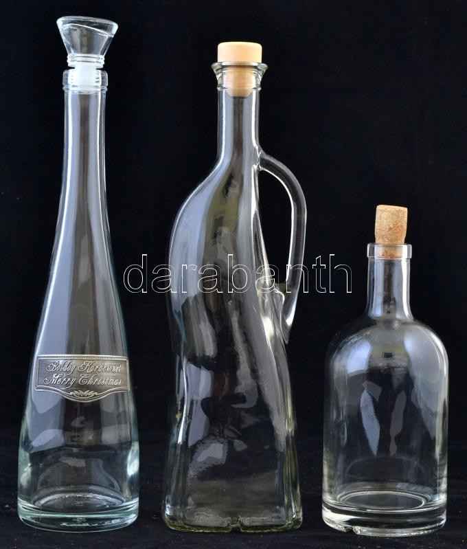 3 db különféle üveg, üveg- ill. parafadugóval, hibátlanok, különböző méretben
