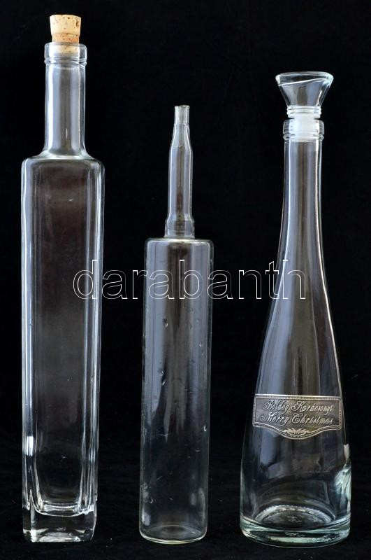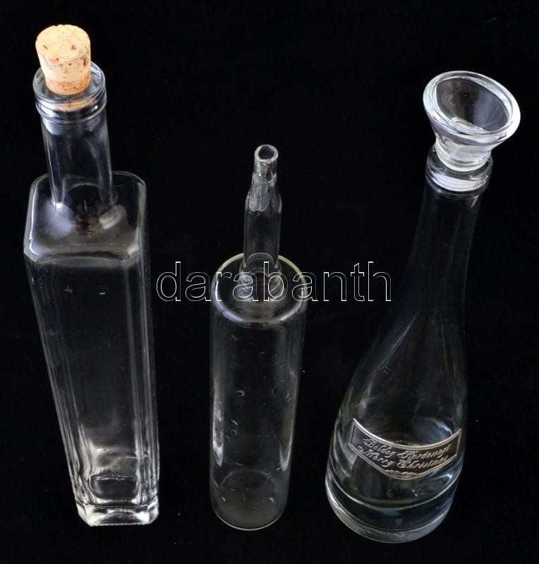 3 db különféle üveg, üveg- ill. parafadugóval, hibátlanok, különböző m...