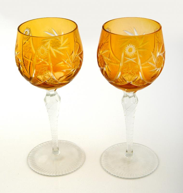 Csiszolt kristály boros pohár ( 2db), két rétegű, hibátlan, m: 19 cm ...