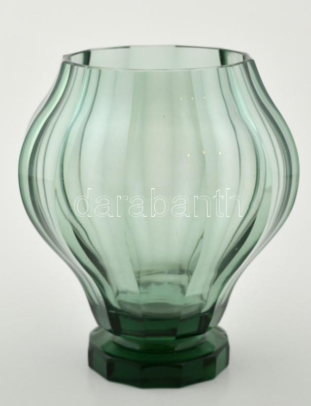 Dekoratív formába fújt váza, anyagában színezett, apró csorbával, jelzés nélkül, m:20 cm, d:17 cm