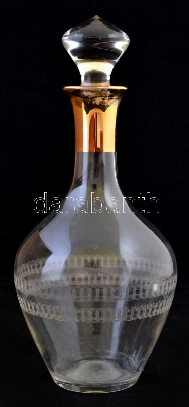 Üveg kiöntő, aranyozott nyakkal, dúgóval, kopott, a dúgó csorba, m: 30...