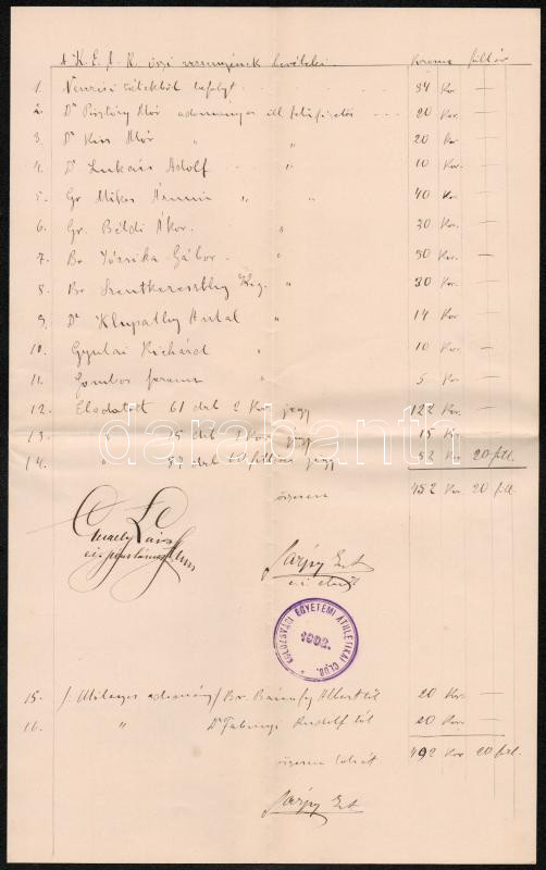 1904 Meghívó a Kolozsvári Egyetemi Athlétikai Club őszi versenyére + a verseny bevételeinek kézzel írt tételes elszámolása. Sport relikvia