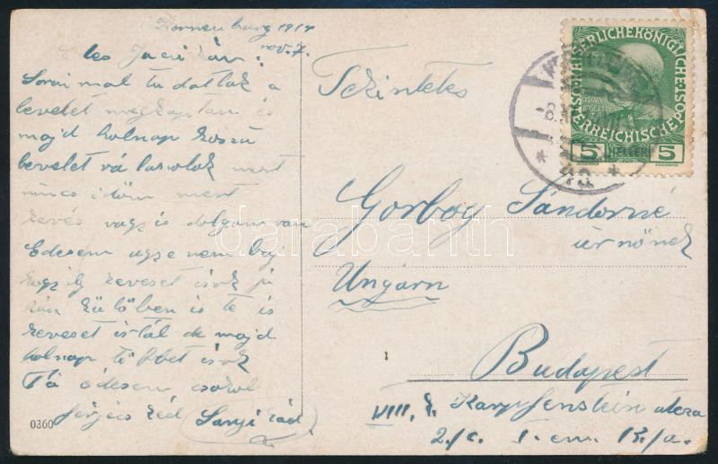 1914 Képeslap, melyet Garbay Sándor, a későbbi Tanácsköztársaság állam...
