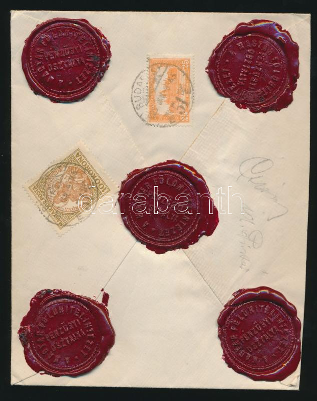 1923 A Magyar Földhitelintézet Pénzügyi Osztályának viaszpecsétje, 5 db borítékon