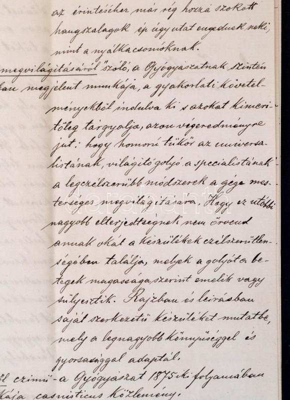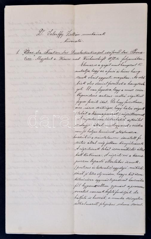 cca 1890 Jelenffy Zoltán (1847-1890) gégeorvos munkáinak kézzel írt kivonata, 20 p.