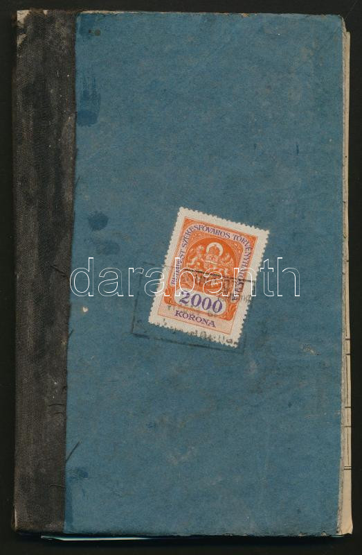 1870 Bádogos foglalkozású izrealita személy munkakönyv, pecséttel, viaszpecséttel, 15 kr. és 2000 koronás illetékbélyeggel, viseltes állapotban.