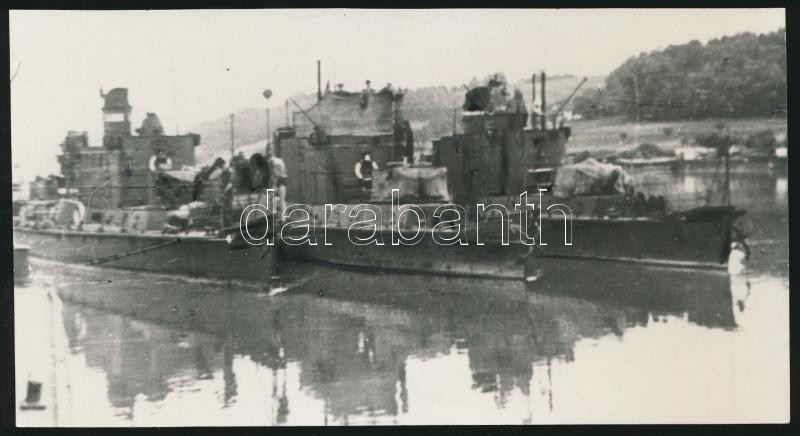 Győr. Sopron és Kecskemét őrnaszádok. Eredeti üvegnegatívról az 1980-as években előhívott fotó. Királyi Folyami Flottilla 18x10 cm