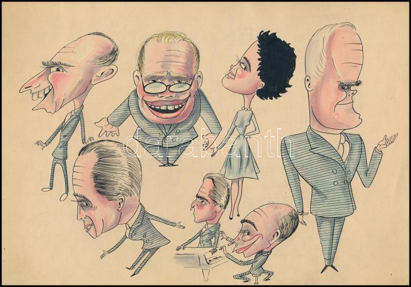 Altorjay: Humoros grafika. Vegyes technika, papír, jelzés nélkül, 30x2...