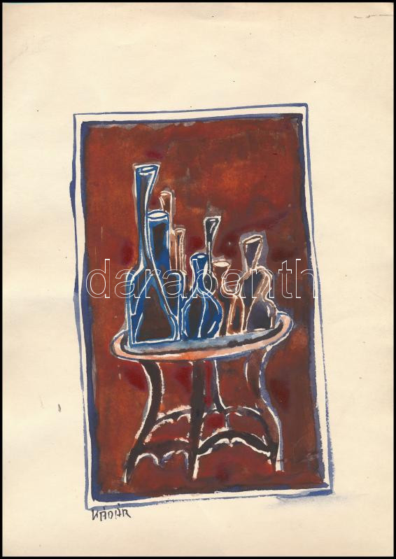 Kádár jelzéssel: Asztali csendélet. Vegyes technika, papír, 20×12 cm