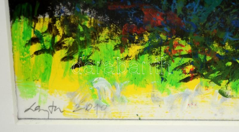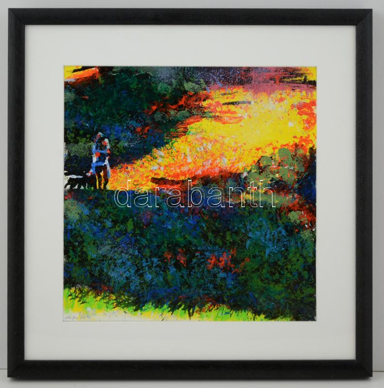 Lajta Gábor (1955-): Domboldal. Akril, karton, jelzett, üvegezett kereteben, 30×30 cm
