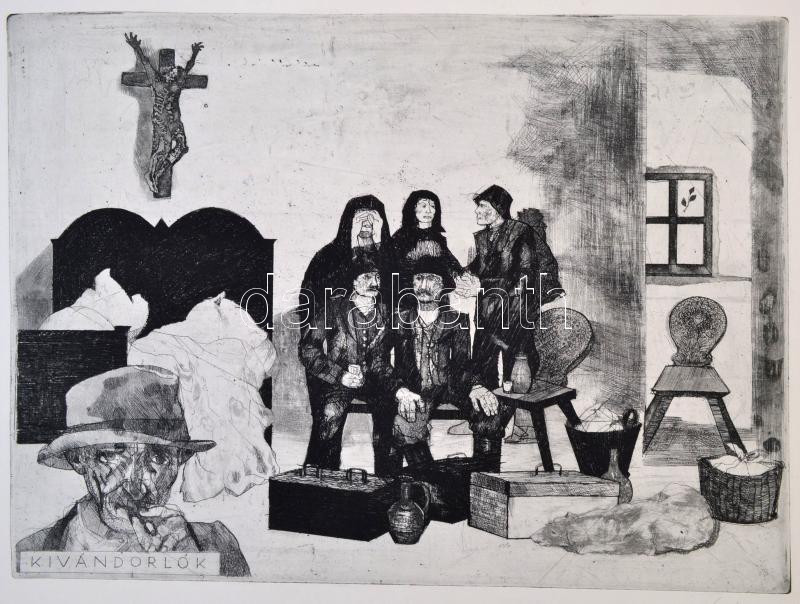Lukovszky László (1922-1981) Kivándorlók. Rézkarc, papír. Jelzett. 39x...