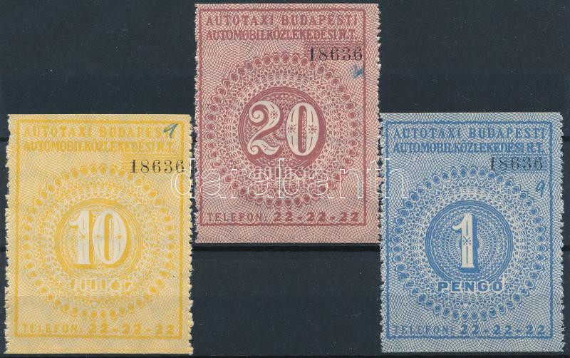 Autotaxi Budapest sorszámozott taxibélyegek 10f, 50f, 1P (R!)