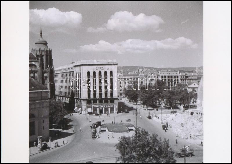 cca 1947 Budapest, látkép a Deák térről, vintage negatívról készült mai nagyítás 18x25 cm-es fotópapírra