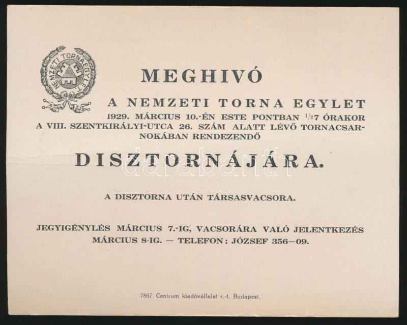 https://www.darabanth.com/en/287-Online-auction/287.0/Other-collectibles/Printed-Materials~100027/1929-Bp-VIII-Meghivo-a-Nemzeti-Torna-Egylet-disztornajara~II1507083