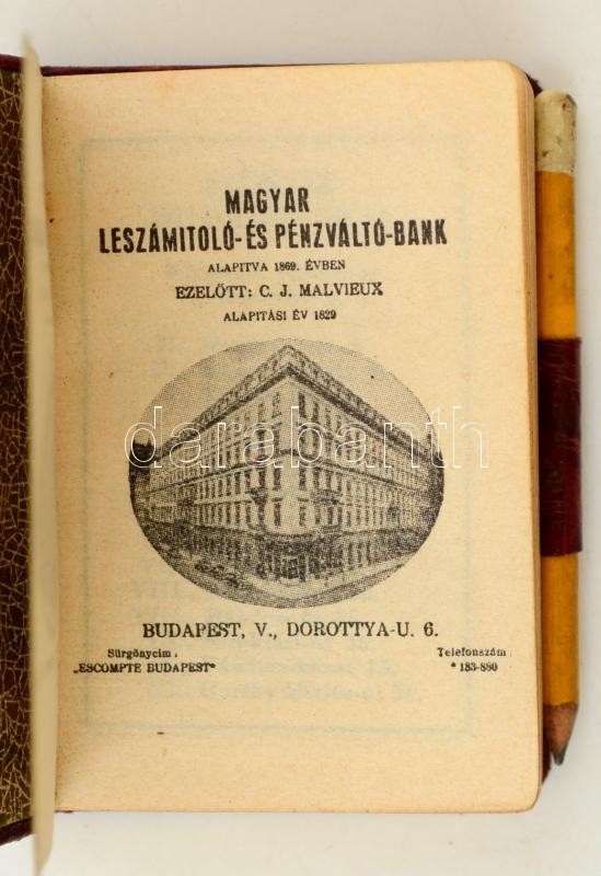 https://www.darabanth.com/en/287-Online-auction/287.0/Other-collectibles/Printed-Materials~100027/1942-Magyar-Leszamitolo-es-Penzvalto-Bank-Klauzal-teri-fiok-zsebnaptar-ceruzaval-bC5~II1501913