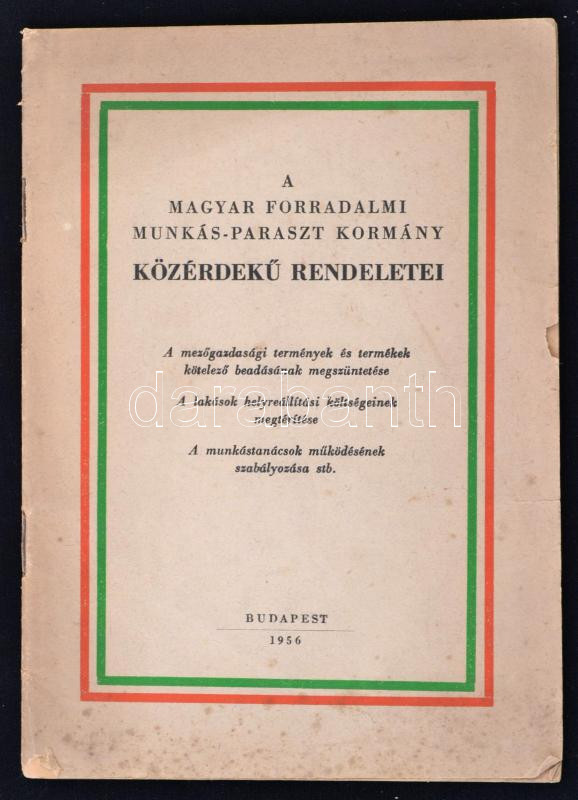 1956 A magyar forradalmi munkás-paraszt kormány közérdekű rendeletei. ... https://www.darabanth.com/en/287-Online-auction/287.0/Other-collectibles/Printed-Materials~100027/1956-A-magyar-forradalmi-munkas-paraszt-kormany-kozerdeku-rendeletei-A-mezogazdasagi-termen~II1504275