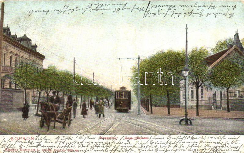 Sopron, Kossuth út, villamos, Kummert L. utóda kiadása (EK)
