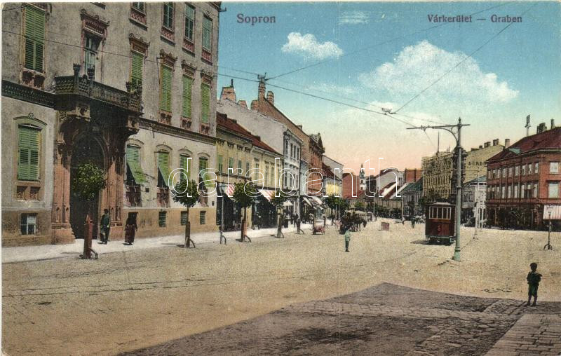 Sopron, Várkerület, villamos, Piri Dániel kiadása (EB)