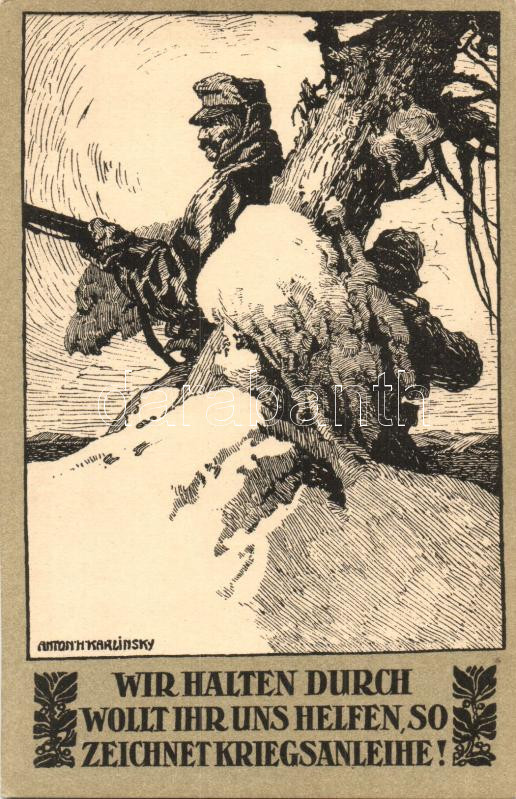 Wir halten durch wollt ihr uns helfen, so zeichnet Kriegsanleihe! / Czech infantry unit's postcard s: Anton Karlinsky