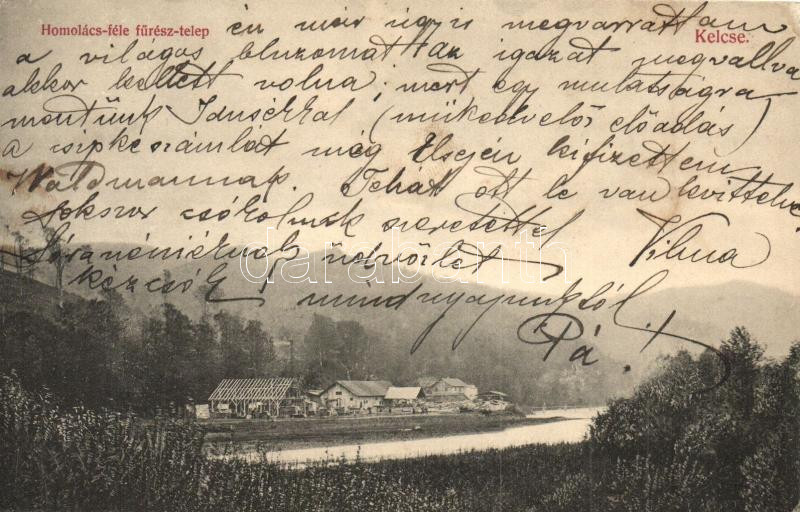 Kelcse, Újkelcse, Nová Kelca; Homolács-féle fűrésztelep, Divald Károly kiadása / saw mill (EK)
