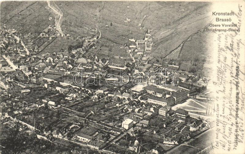 Brassó, Kronstadt, Brasov; Látkép, Bolgárszeg, Julius Müller kiadása / general view, Sceiul