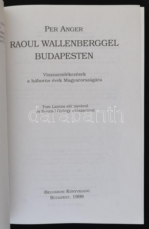 Per Anger: Raoul Wallenberggel Budapesten. Bp., 1999, Belvárosi Könyvkiadó. Kiadói papírkötésben