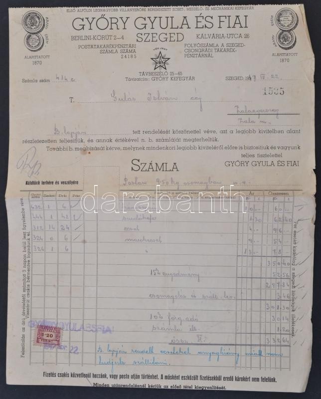 https://www.darabanth.com/en/288-Online-auction/288.0/Other-collectibles/Documents~16/1937-1947-Szeged-5-db-szamla-szamlailletek-belyegekkel-koztuk-diszes-fejleces~II1515977
