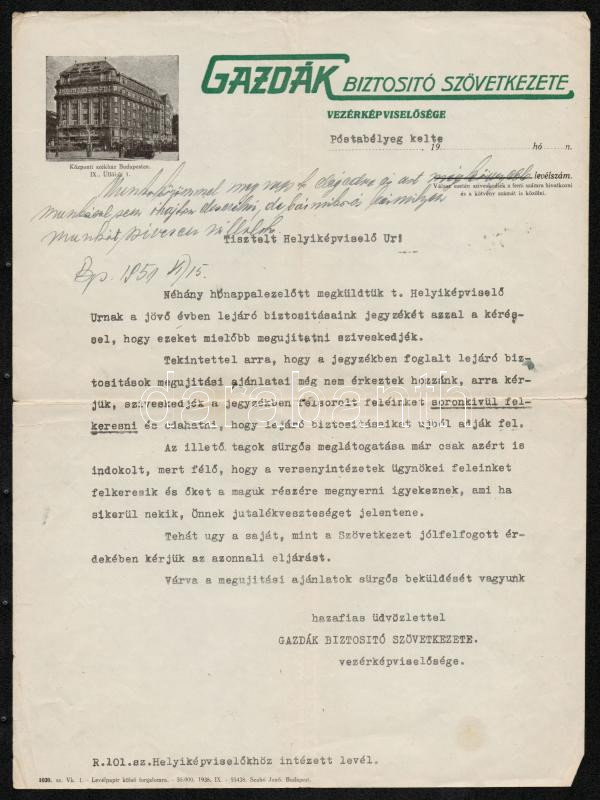 1951 Gazdák biztosító szövetkezete díszes fejléces számla